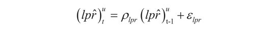 国债收益率根据实际交易情况编制,具有微观决策基础,在后文中以内生变量形式引入模型。LPR由代表性银行报价形成,非真实交易利率,以外生变量形式引入模型。设定LPR方程: