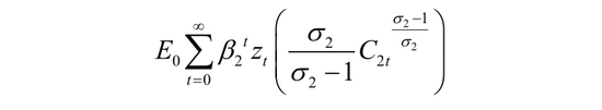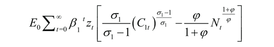 本文考虑家庭异质性,将家庭部门分为工薪家庭和企业家两个部分。工薪家庭在其预算约束下,选择消费、存款、购买债券、劳动供给最大化其预期的一生效用函数: