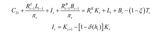 对企业家的行为方程进行优化,可以解得企业家欧拉方程组,对数线性化处理之后纳入家庭部门行为方程组。