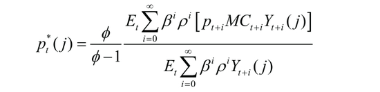 厂商分为最终产品生产厂商和中间产品生产厂商。参考Bernanke等(1999) 和 Iacoviello (2005),假设中间品生产厂商每期生产商品都遵循Calve(1983)规则,即在第t期,有(1-ρ)比例的中间品厂商可以通过优化制定价格: