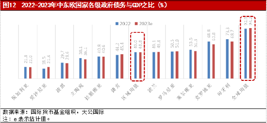 经济复苏乏力及俄乌冲突的外溢效应使2023年大多数中东欧国家政府财政平衡恶化,融资成本上升及欧盟资金的不确定性将使财政的可持续性面临挑战,但政府债务负担处于较低水平且多国有所下降,整体偿债压力不大。
