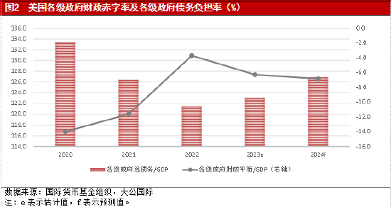 美国紧缩的货币政策使金融体系潜在风险承压,经济的预期放缓、新的财政支出举措、增长的利息负担以及缺乏实质性的财政整顿措施将使各级政府财政赤字率和债务负担率高位上升,加之政治分裂对经济社会和政府财政深刻而长期的负面影响,政府偿债能力承压。