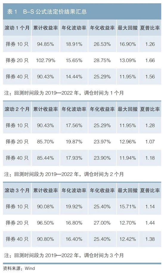 采用B-S公式法,轮动天数分别为1个月、2个月、3个月的模型回测结果如表1所示。