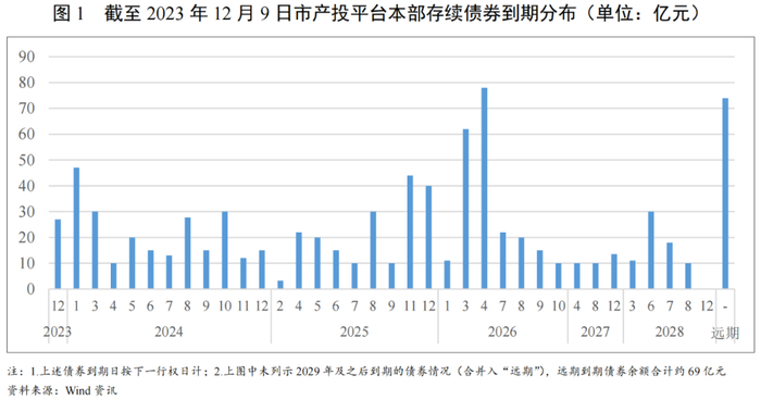 截至2023年12月9日,市产投平台本部存续债券合计850.50亿元(占合并口径存续债约45%),2023年-2025年,到期分布整体较为分散(按行权日计),2个峰值月份的到期债券额分别为47亿元和44亿元,均分布于2~3个企业,部分企业存在单月到期债券金额超过30亿元的情况,需关注其临期流动性情况以及再融资接续情况。