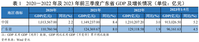广东省国内生产总值(GDP)总量连续34年居全国31个省/直辖市/自治区(以下简称“全国各省”)首位,2022年及2023年1-9月GDP总量分别占全国总量的10.67%和10.53%。广州市作为广东省省会,2022年及2023年1-9月月,广州市GDP总量分别占广东省GDP总量的22.34%和22.64%,相比上年同期分别增长1.0个和4.2个百分点,略低于广东省同期的GDP增速。