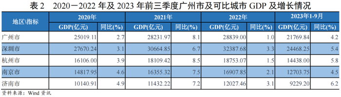 广东省经济总量连续排名全国首位。广州市作为省会城市,GDP规模位于省内第二名、仅次于深圳市,近年来GDP保持上升态势,2022年GDP及固定资产投资增速均明显回调,固定资产投资增速亦低于深圳市,近似经济体量城市中,广州市财政收入相对低,信贷规模逐年扩大,可用于提供信贷的存款资源相对丰富;2023年以来,财政收入及固定资产投资增速均有修复。可比城市中,深圳市上市企业市值明显高于其他城市,广州市上市企业市值在可比省会城市中处于中档,上市企业的行业分布和市值集中度均较为均衡、金融企业市值比重低于深圳,但广州市国资背景上市公司流通市值与深圳市规模相当。