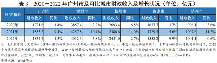 2022年,广州市一般公共预算收入1854.73亿元,同比下降1.5%,明显低于深圳市,且低于经济体量小于自身的杭州市,其中税收收入和非税收入占比分别为67.7%和32.3%(上年分别为74.9%和25.1%);一般公共预算支出3014.22亿元,同比略降0.2%;2023年1-6月,广州市一般公共预算收入相比上年同期增长4.6%至964.30亿元,一般公共预算支出相比上年同期增长1.4%至1600.30亿元。2022年及2023年1-6月,广州市全社会固定资产投资完成额较上年同期变动率分别为-2.1%和6.1%,增速低于同省的深圳市(分别为8.4%和13.1%)。