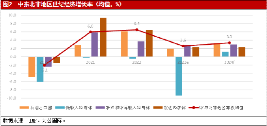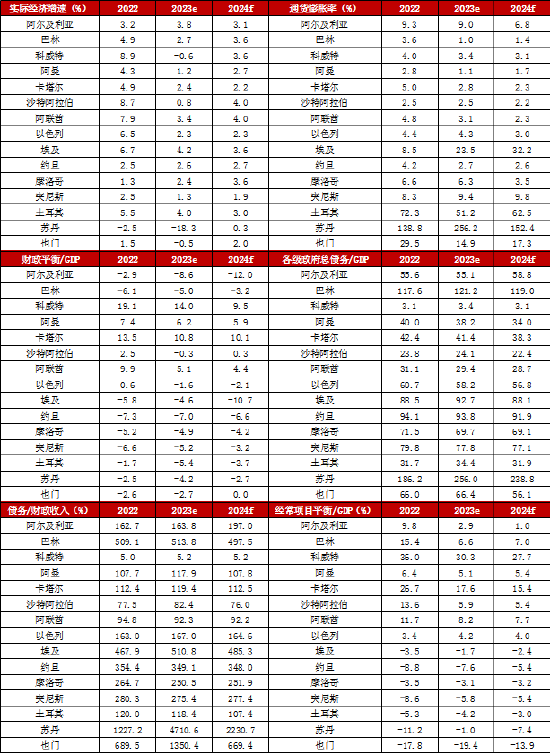 三、受石油减产、紧缩货币政策和地缘政治风险等因素影响,中东北非地区经济增长预计放缓。