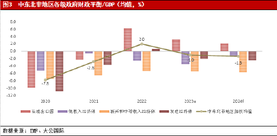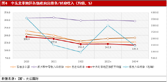 四、中东北非地区财政平衡状况有所恶化,债务偿付压力小幅上升。
