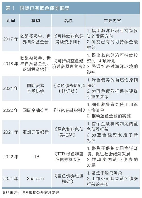 国际蓝色债券框架的比较分析