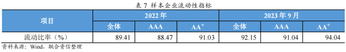 流动性方面,截至2023年9月末,样本企业平均流动性比率92.15%,较上年末略有提升,AAA和AA+样本企业平均流动性比率较上年末均有不同程度的提高,AA+样本企业的流动性比率高于AAA样本企业。需要关注的是,产业类融资租赁公司,特别是能源、飞机等产业的,由于项目周期长,资产期限长,流动比率处于较低水平,且新发债券偏短期,与资产存在一定的错配,需要关注其流动性管理情况。