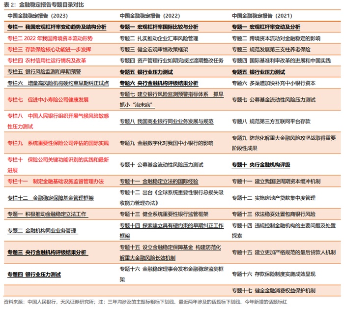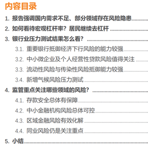 此外,有4个专题单独列于报告末尾,分别为金融稳定立法、金融机构同业业务管理、央行金融机构评级结果分析和银行业压力测试,这些内容与往年报告相似。