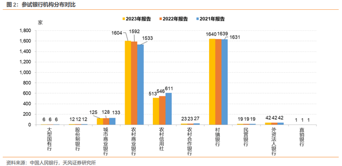 2023年报告中受试银行共3985家,较2022年报告稍减少23家;与2022年报告一致,其中仍定义19家银行为国内系统重要性银行(D-SIBs)。
