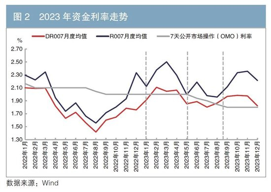 整体来看,2023年资金市场运行节奏与货币政策目标基本一致,大致可以划分成三大阶段(见图2)。