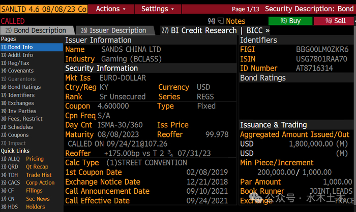 上一次遇到则是澳门本地博彩运营商金沙中国,其在2021年9月24日同样动用Make-whole Call条款,赎回了当时最短的23年到期美元债SANLTD 4.6 08/08/23 Corp,赎回价格107.26元。