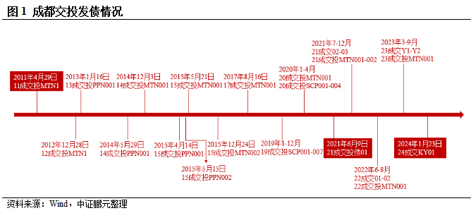 本文从2024年以来发行的城投公司债中共筛选出了17只实现新增的样本,其中有12只全部用于偿还有息债务(不限于公司债,相当于实现公司债的新增,如“24奉交01”、“24临平Y1”等),2只同时用于偿还有息债务和补流(“24沪地01”、“24联港01”),1只全部用于补流(“24济能01”),1只同时用于项目建设和偿还有息债务(“24洛旅02”),1只同时用于股权投资、补流和偿还有息债务(“24成交KY01”)。考虑到样本中绝大多数都是私募债,获取信息的难度较大,因此本文在案例篇不对私募债发行主体做探讨,而仅对公募公司债发行主体展开分析。样本中仅有一只债券为公募发行,即“24成交KY01”,债券类型为科技创新可续期公司债,发行规模10亿元,募集资金用途为:不低于3.00亿元用于对四川宁西高速公路建设开发有限公司、四川成绵苍巴高速公路有限责任公司等公司股权投资,以支持发行人主营业务发展壮大;不超过2.00亿元用于补充流动资金;其余募集资金用于偿还公司有息负债,真正实现了新增融资。鉴于此,本文将依据从公开渠道获取的信息,对上述债券的发行人成都交通投资集团有限公司(以下简称“成都交投”)进行研究,以期能从中得到启发。
