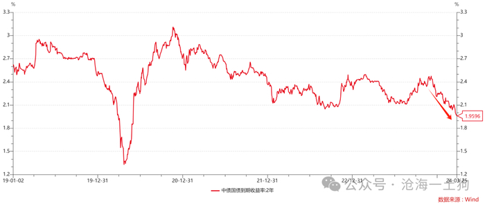 但是,两年国债却继续向下,因为两年国债利率根本不care货币流通速度V,他只在乎宽松预期强不强。