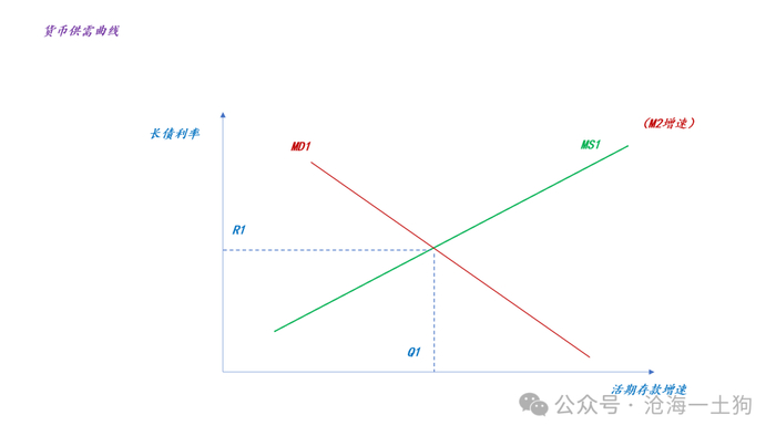 如上图所示,它纵轴是利率,横轴是活期存款的增速。