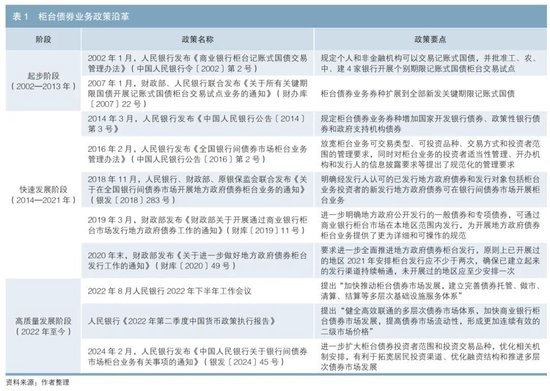 2002年1月,人民银行发布《商业银行柜台记账式国债交易管理办法》(中国人民银行令〔2002〕第2号),个人和企业可通过商业银行柜台认购和交易记账式国债,这标志着柜台债券业务的起步。2007年1月,财政部、人民银行联合发布《关于所有关键期限国债开展记账式国债柜台交易试点业务的通知》(财办库〔2007〕22号),将柜台债券业务券种扩展到全部新发关键期限记账式国债。这一阶段,柜台债券业务品种仅限记账式国债,业务规模平缓增长。