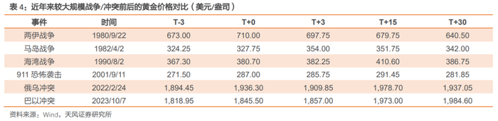 参考1980年代以来一些规模较大的冲突事件来看,事件发生后,短期内黄金价格大概率上涨,但这些事件对金价的影响程度可能会在接下来的几个月内下降,有时金价甚至会在事件发生后的短期内较快地回调下跌。