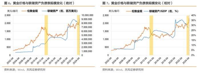 但是需要注意的是,并不是每次联储重要的快速扩表阶段都对应黄金价格的上涨,比如2012年末-2013年末。