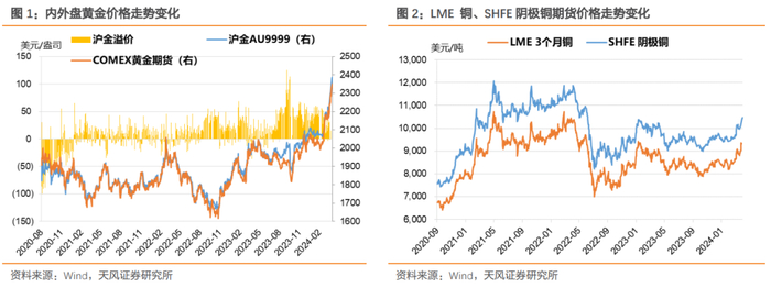 以COMEX黄金期货价格计算,一季度黄金价格上涨7.8%,其中3月涨幅9.3%;截至4月9日,收于2351.4美元/盎司的历史新高。