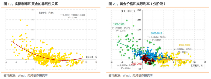 实际上黄金价格与美国实际利率的相关性强弱是时变的。总结历史上黄金价格和实际利率的关系,主要是如下几个阶段: