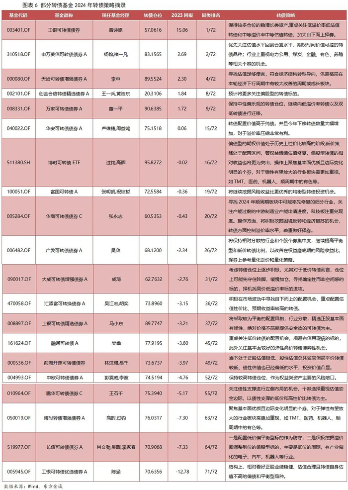 2024年,基金经理转债策略仍以防御为为主,重点关注双低策略及强债性YTM策略,行业配置上,有色金属为代表的顺周期板块、AI为代表的高景气科技板块,以及估值调整充分的医药与TMT板块,为主要布局方向。