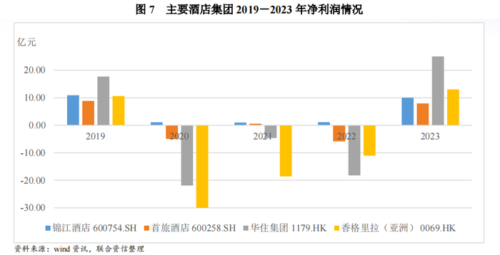 从主要酒店集团经营数据看,2023年,锦江酒店境内可比酒店(中端酒店和经济型酒店)RevPAR为166.96元/间夜,同比增长44.79%,较2019年增长6.17%;华住集团RevPAR为229元/间夜,同比增长44.03%,较2019年增长19.90%;首旅酒店RevPAR为154元/间夜,同比增长58.4%,恢复至2019年的97.47%;香格里拉(亚洲)RevPAR为108美元/间夜,同比增长68.75%,恢复至2019年的98.18%。从盈利情况看,2023年上述四家酒店集团均实现盈利,且同比显著增长,其中,华住集团和香格里拉(亚洲)净利润已超过2019年,较2019年分别增长130.92%和22.56%,锦江酒店和首旅酒店恢复至2019年同期的91.69%和89.84%。