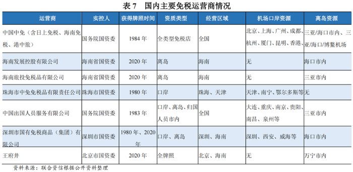 从竞争格局看,国内免税行业进入壁垒较高,从事免税业务必须经过国务院或其授权的政府部门批准。2020年海南省实施海南离岛免税新政后,免税市场新增海旅免税、海控免税、深圳免税、中服免税4家经营主体的离岛免税牌照,同年6月王府井获批了免税牌照,其免税牌照为全牌照,具有经营口岸、离岛、市内免税店的资质。截至目前,我国共有10张免税牌照,其中中国中免拥有3张,包括日上免税、海南海免和港中旅。中国中免行业龙头的地位巩固,在中国免税市场份额约占80%。