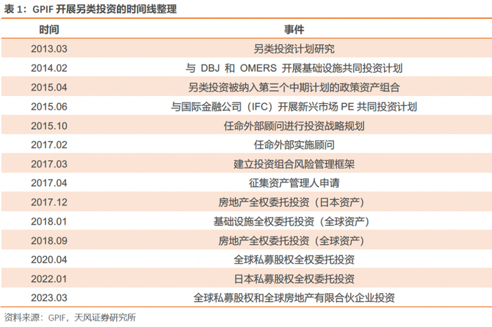 资产类别多元化方面,GPIF自2013年起积极参与另类资产投资。