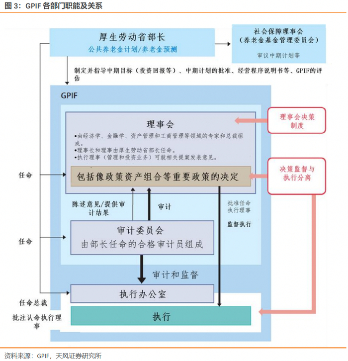 为此,政府养老金投资基金(GPIF)于2006年成立,其前身是2001年成立的所谓“养老金运用基金”,负责管理和投资厚生劳动省委托的储备资产,为国民年金和厚生年金提供稳定的支付保障。厚生劳动省是GPIF 的上级监管部门,GPIF 具体负责养老储备基金的管理和投资运作。