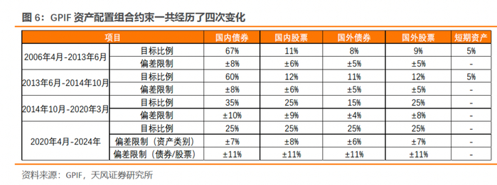 自2006年成立以来,GPIF的资产配置约束一共经历了四次变化,最近的一次调整适用于2020年4月之后的资产配置。资产配置约束是具体的配置行为的锚。