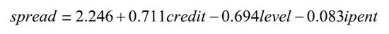 综上分析,最终得到我国知识产权ABS定价利差影响因素回归模型为: