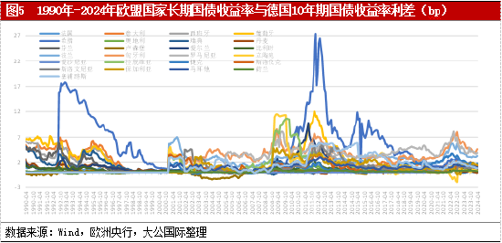 综合来看,欧盟债券市场一体化进程虽历经波折和短期倒退,但总体呈现一体化程度不断提升态势,主要表现为市场规模持续扩大,长期国债收益率走势趋同和主权信用利差收窄且波动减小。总结历史经验与教训,这一发展趋势,一方面得益于欧洲金融市场监管体系和风险管理框架进一步完善,债券市场间的监管和协调加强,有效保障市场稳定性和健康发展。另一方面也是最为关键的一点,得益于财政一体化工具的适度出台。通过各国政府间合作加强,两次危机期间出台的财政性质救助工具,对稳定市场预期和重建市场起到关键作用。
