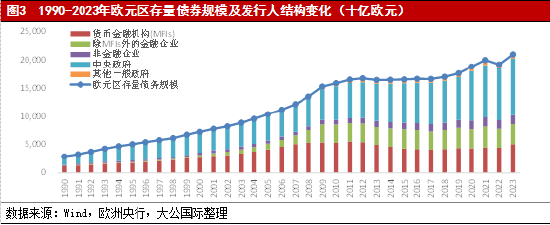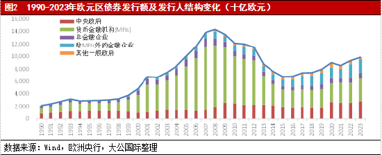 欧洲地区债券市场是全球投资者关注度仅次于美国的第二大债券市场,且随着欧洲一体化进程的不断深化,正展现出前所未有的大规模、高增长态势。这一趋势不仅体现了欧洲经济的强大韧性和活力,也彰显了该地区债券市场在全球化进程中的重要作用。欧洲地区债券市场因其多元化特征,较美国相对统一的债券市场,其管理更为分散,大区域划分可分为欧元区和英国,但由于英国已脱欧,且英国债券市场各项特征以及币种独立,因此本文研究对象仅限于欧盟地区。