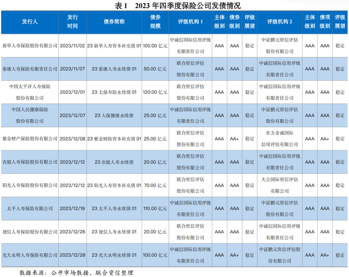 二、2023年四季度及2024年一季度保险行业债券发行及级别变动情况