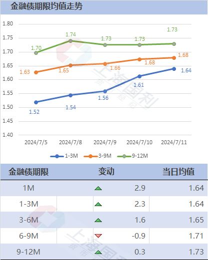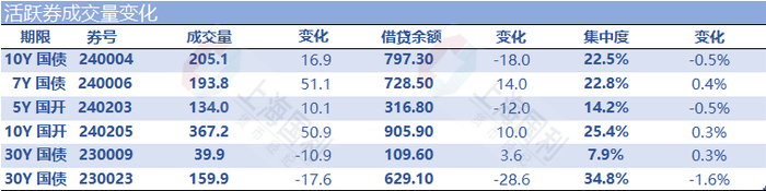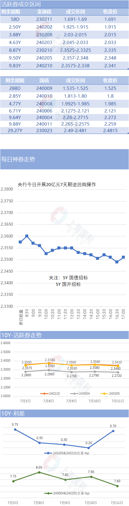 价格方面240011降1bp,240210降4bp,其他活跃券总体持平。