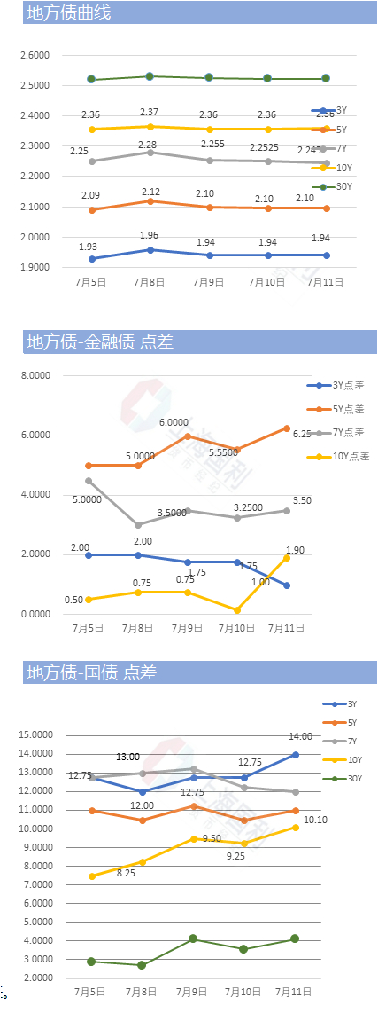今日地方债上午平平无奇,下午情绪转好,5Y7Y较为活跃,收益率随市场下行。