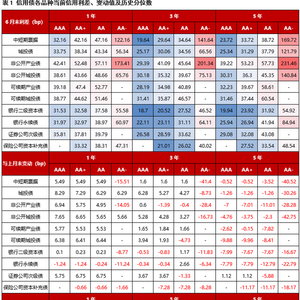 城投债:6月主要评级、期限城投债信用利差多数走阔,但仍处于历史低位。各省城投债信用利差多数收窄;分评级看,高等级城投债信用利差有所修复,低等级城投债信用利差多数延续收窄。