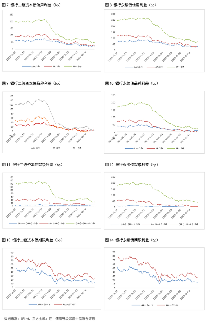 二永债:6月银行二永债信用利差和品种利差低位震荡,等级利差和期限利差多数收窄。