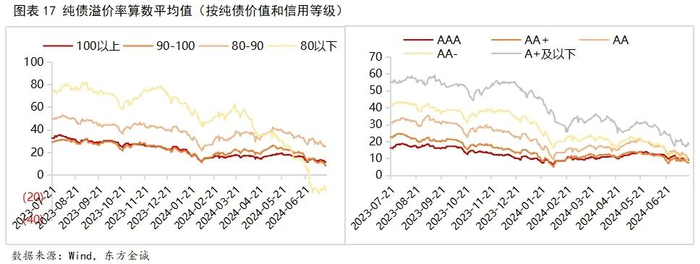 整体来看,二季度基金主动加仓有两条明确主线,一是继续加仓大盘转债稳中求进,重点集中在高评级银行转债,二是布局新质生产力方向,重点加仓电力设备、汽车行业转债;基金减仓重点则为部分前期涨势较好的大盘转债,以兑现收益、规避强赎,并对暴露信用风险问题失去债底锚定效应的低价转债集中出库。短期来看,市场避免情绪主导下对无明显信用瑕疵的弱资质转债的错杀,仍在阶段性的为转债市场创造重要收益空间。7月17日,广汇转债出现交易类退市,再度对低价券市场认知形成压制,7月19日破面转债数量再次达到103支高位,市场对弱资质个券重铸信心仍需时间。考虑到当前破面的低价券中,七成正股价格在5元以上,平均剩余期限近4年,距离交易类退市与到期清偿、回售违约仍有距离,且大多无明显信用风险,而到期收益率平均却已上升至7.99%,在当前低利率环境下为增厚债性收益提供了机会。