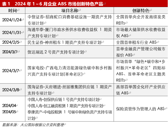二、2024年1~6月企业ABS市场动态
