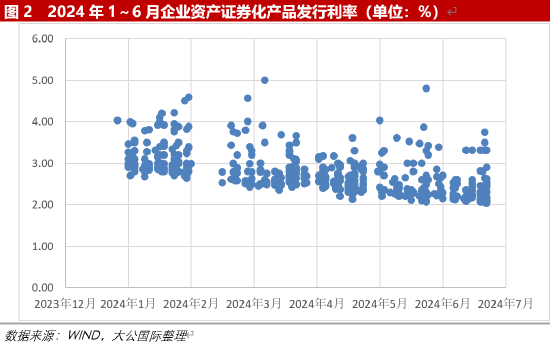 2024年1~6月,企业ABS发行量同比有所减少;发行利率随市场利率水平整体呈下降趋势。