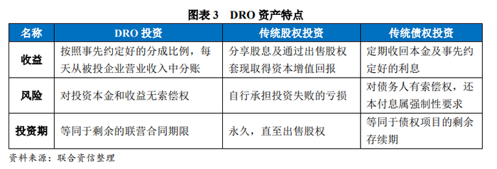 从融资端看,小微门店端作为融资人,该融资模式没有还本付息义务,有效降低了其刚性负债的压力。从投资端看,银行等投资机构,可以通过DRO产品参与到更广泛的线下消费行业投资中,这种投资方式产生回报的时间更短,且拥有更具潜力的未来收益水平。