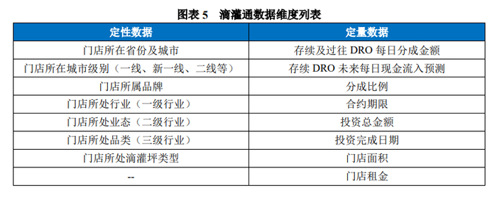 截至2024年2月末,滴灌通提供了超过1万张DRO的历史数据,且滴灌通对每张DRO对应的门店均进行了多维度的细致分类,整体上数据可分为定性数据与定量数据(详见图表5),丰富的数据为后续的分析提供了基础。