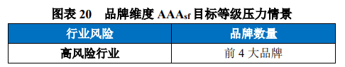 参考行业光谱及相关风险指标,我们将品牌按照其所属行业风险特征划分为高、较高、中、较低、低五类不同风险行业。在品牌风险压力测试中,品牌所属行业风险越高,压力情景要求越严格,受评证券必需信用支持需要覆盖的出现风险的品牌数量越多。在同一目标等级下,需要在不同风险行业内,选取不同数量的品牌进行压力测试,如果受评证券分层支持能够覆盖目标等级下所有特定品牌组合集中闭店所带来的损失中的最大值,则受评证券可以获得目标等级,反之则达不到目标等级。