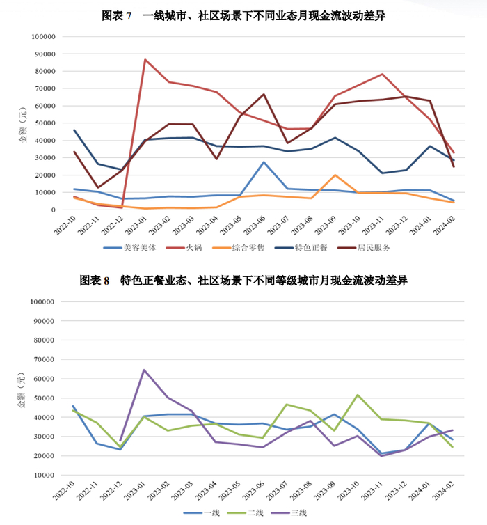 我们通过控制变量的方法,对行业、城市、滴灌坪三个主要定性指标进行了分析,以观察月现金流在不同定性指标分类下的表现差异。从图表7~9对比可以看出,在控制其他两个变量的情况下,不同行业的现金流波动形态差异很大,不同城市等级和不同滴灌坪的现金流波动差异相对较小。