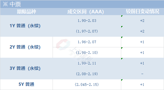 今日中票市场成交较为活跃。年内买盘有显著回暖,以基金和一些银行为主。年底到期前短券,特别是月内短期限买盘收券较凶。300D左右1.9附近好名字今日关注度较高,一些近1Y期限的资质较好的AAA城投也有高关注度。1-2Y延续之前冷清的情况,都在估值减点关注一些国企。2-3Y成绩较为活跃,以几个常客基金买盘为主,继续偏爱一些收益较好的券。部分买盘有2-3Y的好名字需求但成交不多,期限内AAA多成交在估值-1。2.89Y汇金的成交位置从1.97到1.96(估值1.97)。长端成交继续火热,5Y券商收券积极,5Y的003和005两期汇金成交位置都从估值点到估值-1,但尾盘盘面上OFR挂到估值和估值+0.5也无人问津。10Y热度也继续和5Y相当,各类买盘都有积极参与,基本在估值下2-3bp看好名字。10Y诚通成交在估值-3位置。永续较活跃,基本上是几家基金理财和保险在收券,关注高收益央国企,收券集中在1Y附近,长永续转淡。