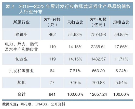 第二,应收账款ABS的发起人以中央企业和地方国有企业为主(见表1),资产出售方集中分布于建筑业,呈现出显著的行业特性。